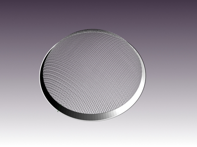 Hola este es un reto a modelar algo especial, les cuento. Mi se dedica a hacer coladeras y me pidió de favor muy especial trabajar en sus diseños de coladera y se me ocurrió hacerlo en 3d, pero no encuentro como modelar está hecho con criba es decir una malla metálica la cual se curva como media esfera, pero los hilos se entrelazan así:
