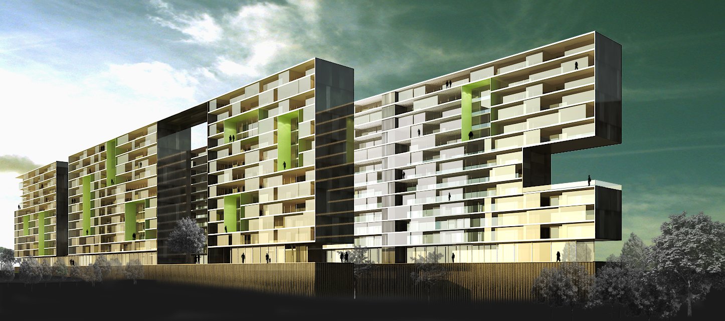 El bloque de la derecha está demasiado blanco y reflectante para una imagen tan grande creo, si pudieras darle un poco más de definición, no sé, para diferenciar el plano de fachada de los paneles de más adentro, o quitarle un poco de reflejo, pero no se en general está muy chula. Saludos.