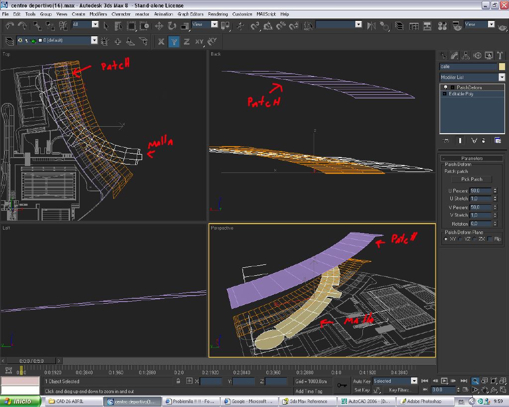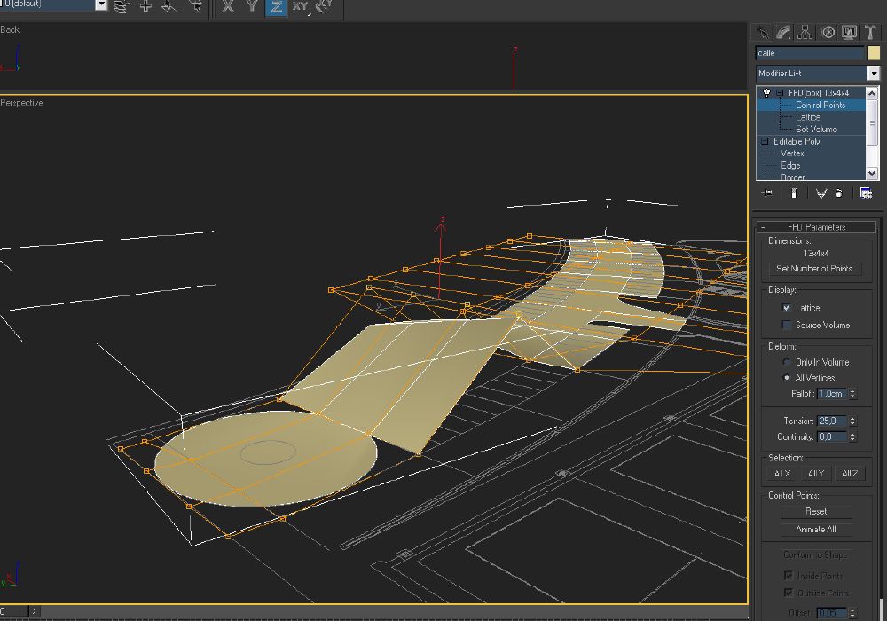 Los taludes que unen el terreno con la carretera los modelo en editpoly. Si de la carretera tengo un buen plano con cotas, la modelo en Edit Poly, por ejemplo.