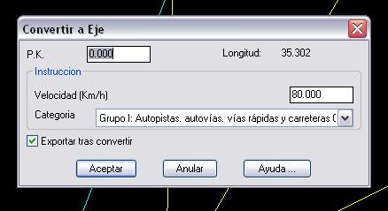 Si, el cuadro está bien configurado. Te da igual la categoría de tipo de vía, porque no es para ninguna obra lineal. Esta marcado lo de exportar tras convertir, por lo que al aceptar te pregunta donde quieres guardar el eje, ¿no?
