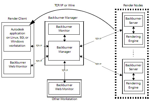 Xsi, Autodesk Maya, afterafects, etc tienen otros servidores de render distribuido, pero su esquema de funcionamiento es más o menos el aquí descrito. Recordar que algunos programas de postproducción de video admiten el render distribuido, algo a tener muy en cuenta. Max y Combustion comparten el mismo.
