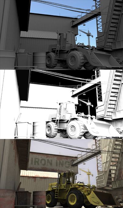 Aquí os dejo 3renders, de la malla del pase de Occlusion y de la composición final.