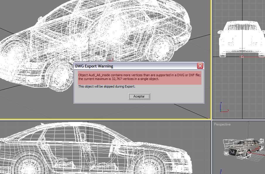 No recuerdo ese comando, pero bueno, ya daré con él. El mensaje que me aparece al intentar exporta los objetos seleccionados a 3ds es el de la imagen. Alguna sugerencia?