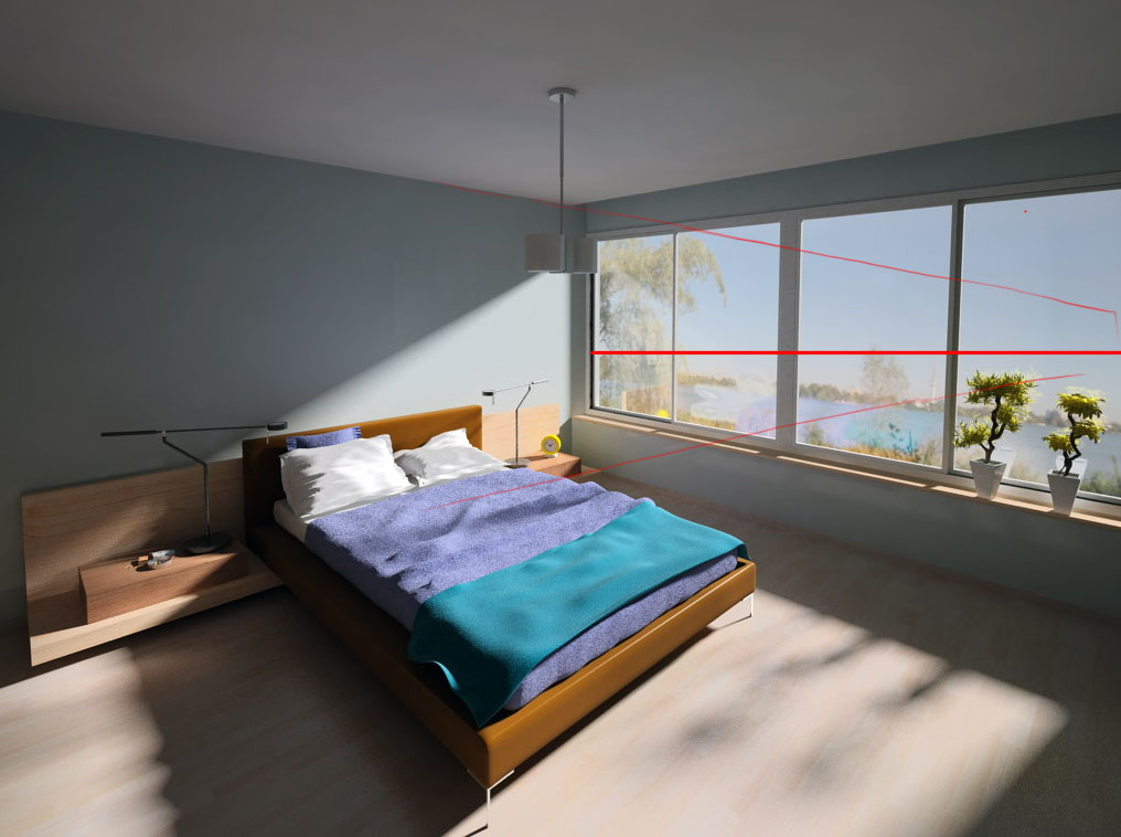 Un fallo grave que veo, la línea del horizonte nunca ira paralela al marco de la ventana, si no que será siempre horizontal, te adjunto una imagen.