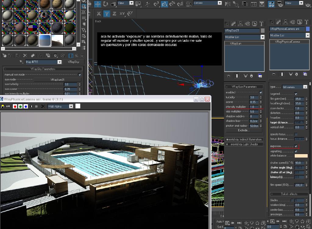 Hola, yo tengo un problema, trabajo con Vray Sky, Vray Sun y pishycalcamera. No doy con el modo de hacer las sombras más suaves, sale todo oscuro a matar.