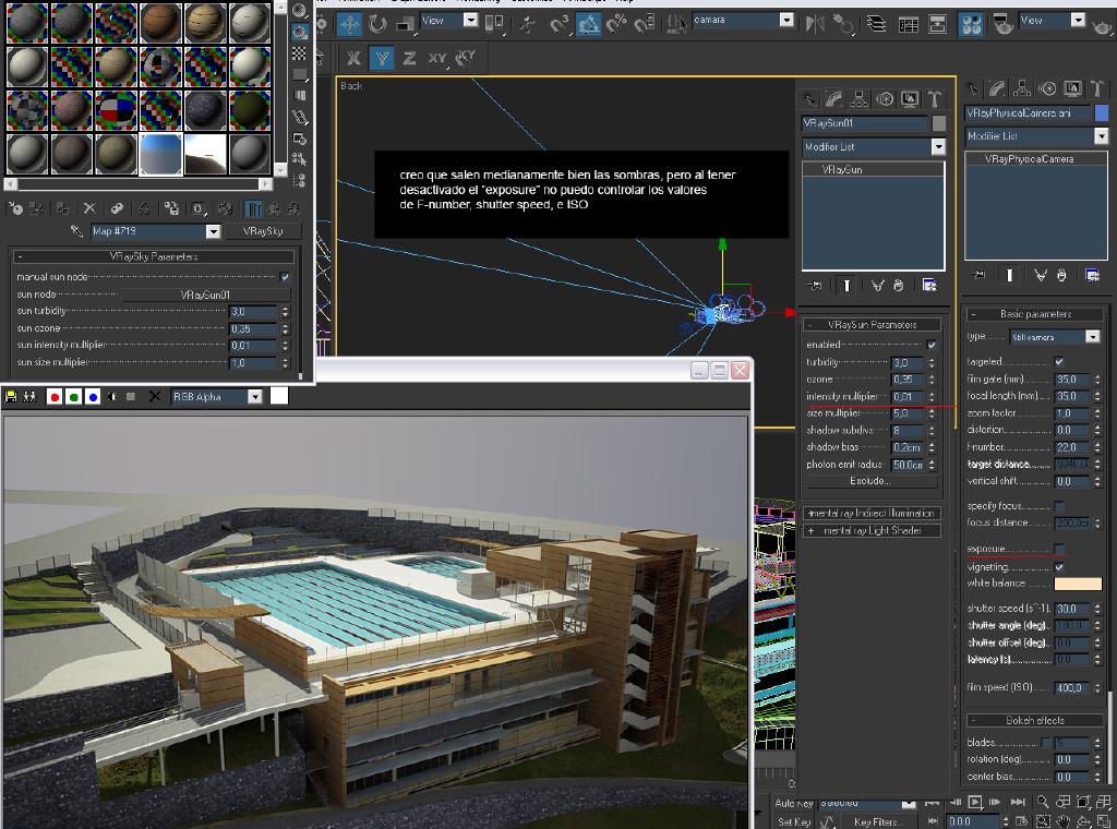 Sin embargo, al renderizar con una cámara standrad del 3ds Max ya no tengo estos problemas, pero claro la pishycalcamera es más manejable en otros aspectos, y al cambiar de cámara también debo volver a cambiar varios parámetros.