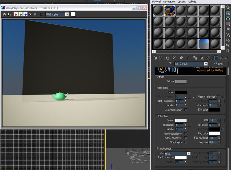 Pit, una pregunta, renderizaste con vraypysicalcamera? Otra cosa. No puedo descargar tu material, por otro lado, he creado una escena desde cero y aplicado un material solo con refract en blanco, y sale esto.