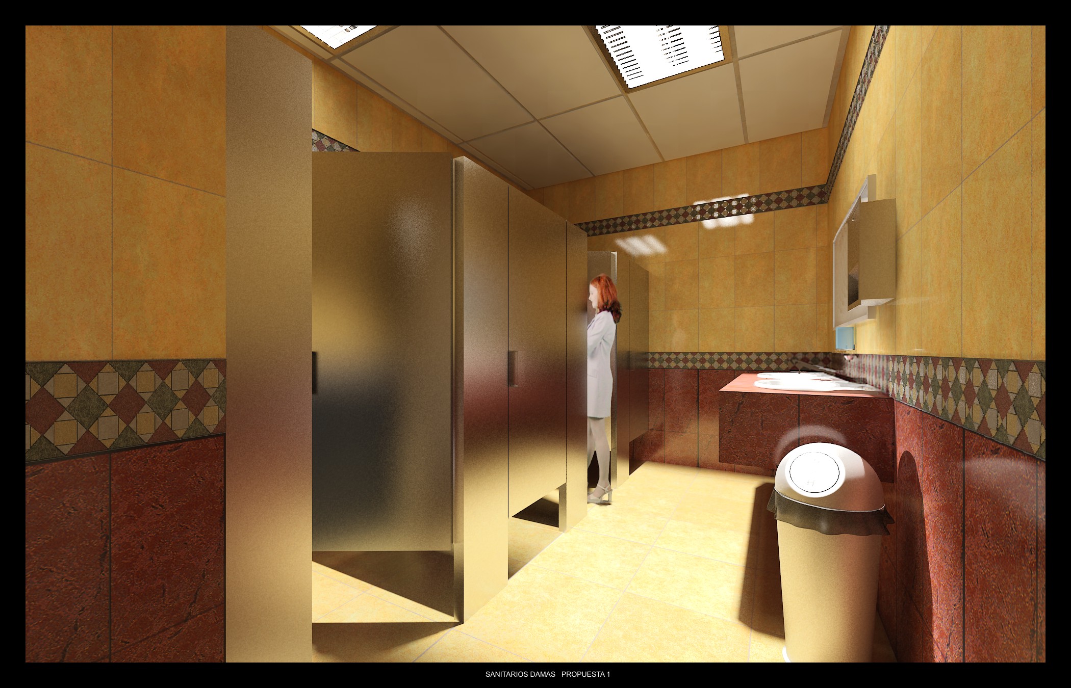 Bueno muchas gracias por las críticas les respondo : en primera tienen razón con lo de la chica muy fea es más ya no me gustó al final, con lo de referente a lo de suciedad no me hubiera gustado mucmortal kombat idea, es un baño de oficinas no me gustaría mucho la idea de mostrar algo sucio al menos no en un baño, con lo de referente en Archicad lo exporto como 3ds y la verdad no me preocupado mucho en exportarlo por capas o por materiales tal vez porque no sé, pero si me explicas cómo se exporta por capas te lo agradecería mucho y con lo refente de la luz son 2 luces Vray y dos cómo se llaman target creo tiene iluminación blanca el tono amarillento lo toman del azulejo que refleja el amarillo ha y las losetas las baja según el cliente de interceramic y algunas las retoque en PhotoPaint.