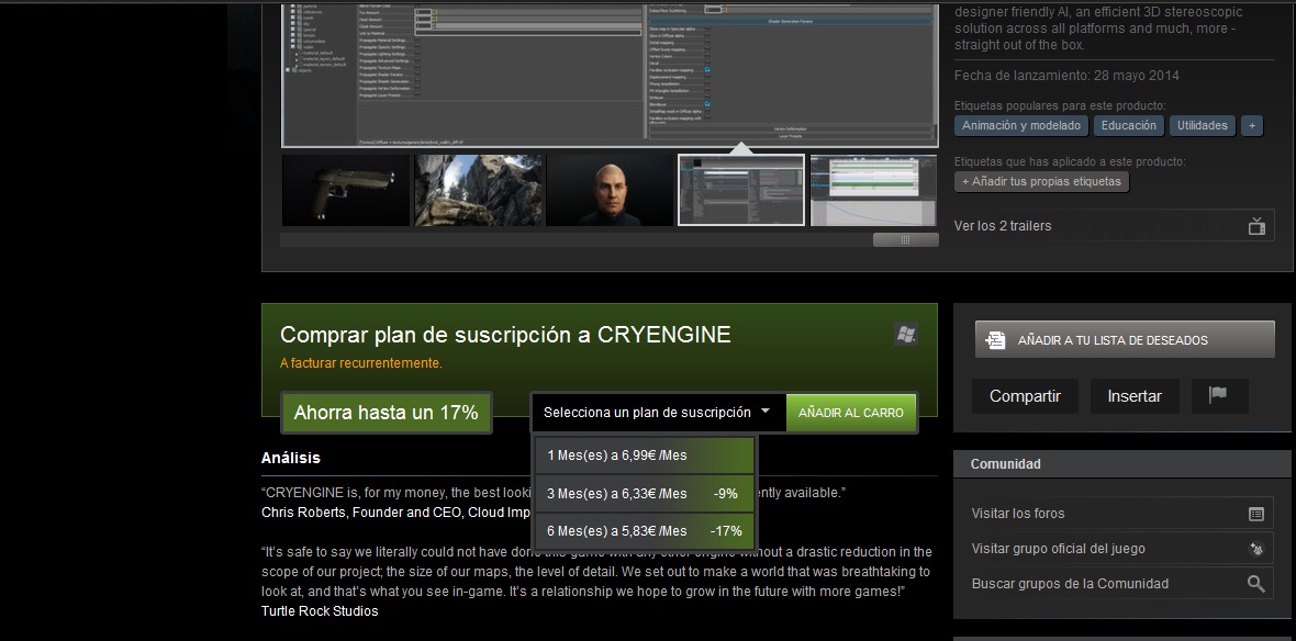 Aunque la Community Edition se puede usar sin coste, CryEngine aplica un modelo de regalías del 5 por ciento sobre los ingresos que superen los 5.000 dólares por proyecto. Es decir, si el juego o aplicación no genera ganancias, no se paga nada. Esto convierte al motor en una opción atractiva frente a alternativas como Unreal o Unity, ofreciendo una política flexible y un acceso completo a las herramientas sin limitaciones técnicas ni visuales.