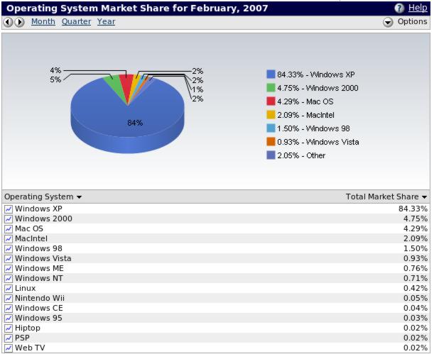 En esa encuesta se ve que el Linux pasó de 0.4 a 0.8, y el Windows Vista pasó de 0.9 a 3, incremento de más del 200%.Cita: