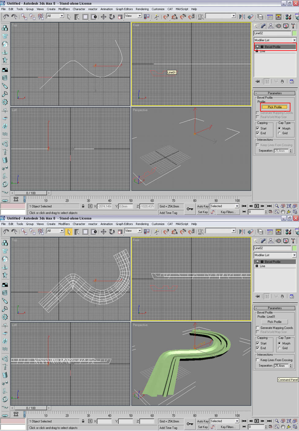 En cuanto hago el pickpath el objeto a extrusar se me va a cualquier lado, y en cualquier posición 02: