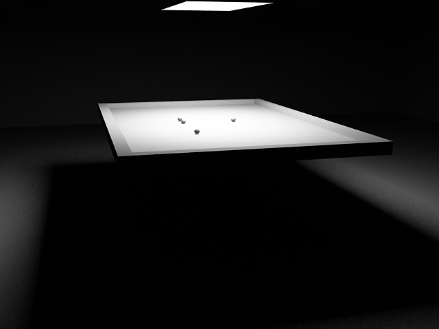A pesar de la atenuación (la luz no llega al suelo) el suelo se ilumina un poco. Fácil solución. Excluyo el suelo de la luz. Tararí que te ví. La luz sigue iluminando el suelo. Incluyo solo la mesa de billar. Tararí que te ví. Sigue haciendo lo que le sale de la punta de la nariz.