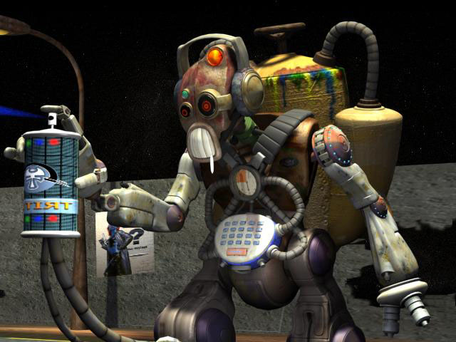 Buenas, muy original tu imagen. Lo que no veo bien es el Shader del robot, no parece metal, parece más bien cemento, la luz también se puede mejorar mucho, y queda un poco raro el fondo que tiene, quiero decir, se ve un gran vacío negro al fondo, en negro se tiene que evitar siempre (o casi siempre), le quitan mucha vida. Saludos.