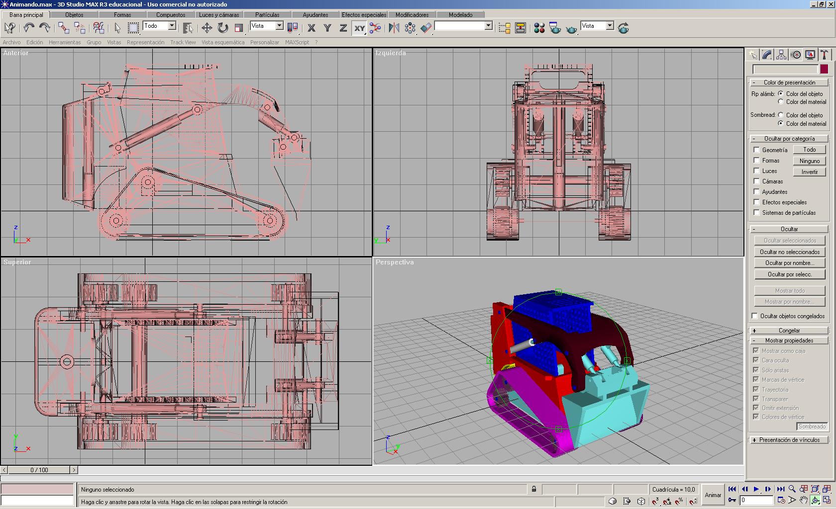 En clase hemos dado muchísima teoría de materiales y luces, pero a la hora de animar mecanismos apenas hemos dado nada.