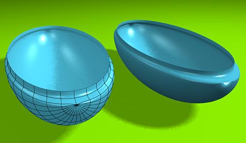 En realidad, los polys triangulares no son un problema y en muchos casos son necesarios. Por ejemplo, en esta imagen tienes un modelos parecidos al tuyo, es una semiesfera estirada, son iguales, sólo que uno te muestra la malla que la conforma.