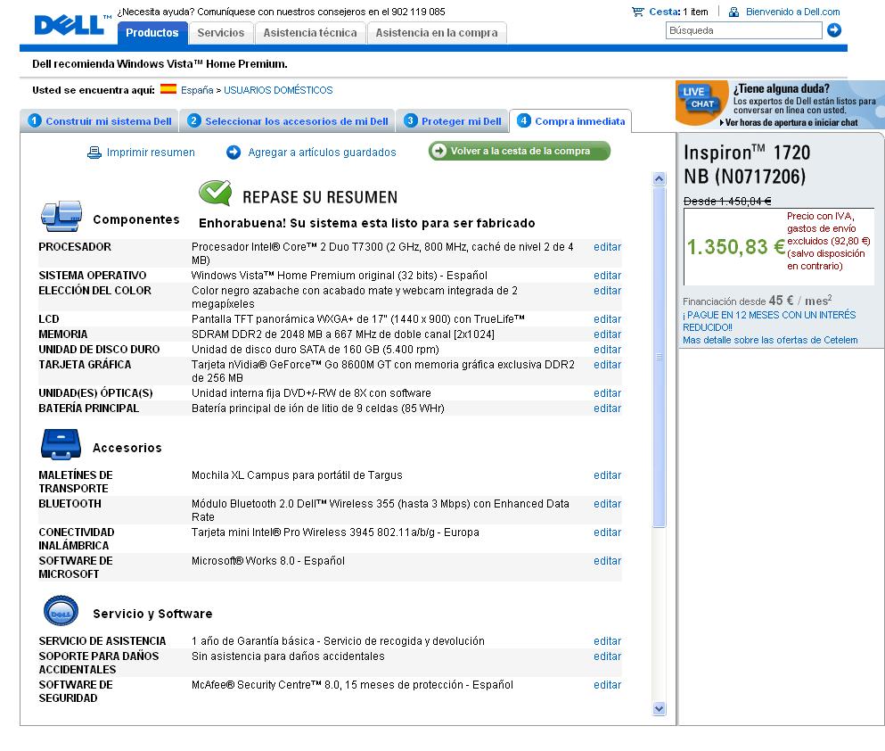 Nada, esta decidido. El martes me lo entregan. Ya os contaré como me va. Lo primero formatearlo y quitarle el Windows Vista. Finalmente no compro el Dell Inspiron 9400 porque no quiero tarjeta Ati ni borracho. Ya sé que no es mala tarjeta, pero tengo un largo historial de malas experiencias con esta marca.