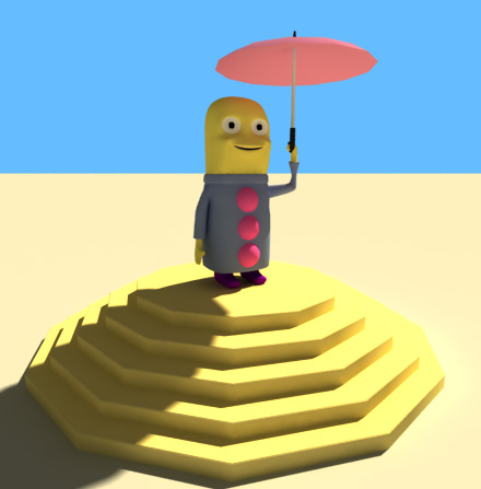 Este es el personaje base, pretendo hacer de 1 a 1000000 personajes integrados en una colosal escena que tenga de todo, hasta un paraguas. No es broma, de muestra esto.