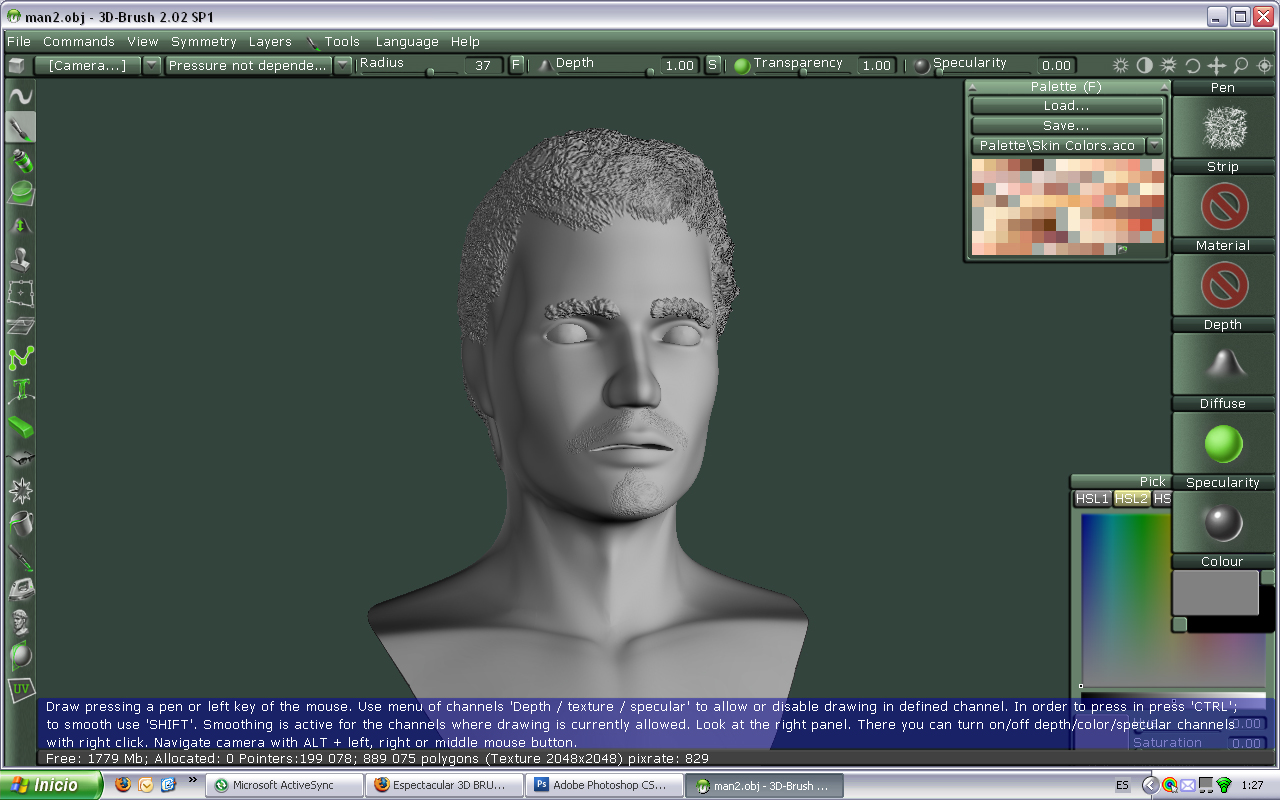 Pues eso, un programa de esculpido free (por lo menos en su beta 1.7) que tiene la interesante particularidad de pintar los pequeños detalles en mapas de normales. 3d brush. Un saludo.