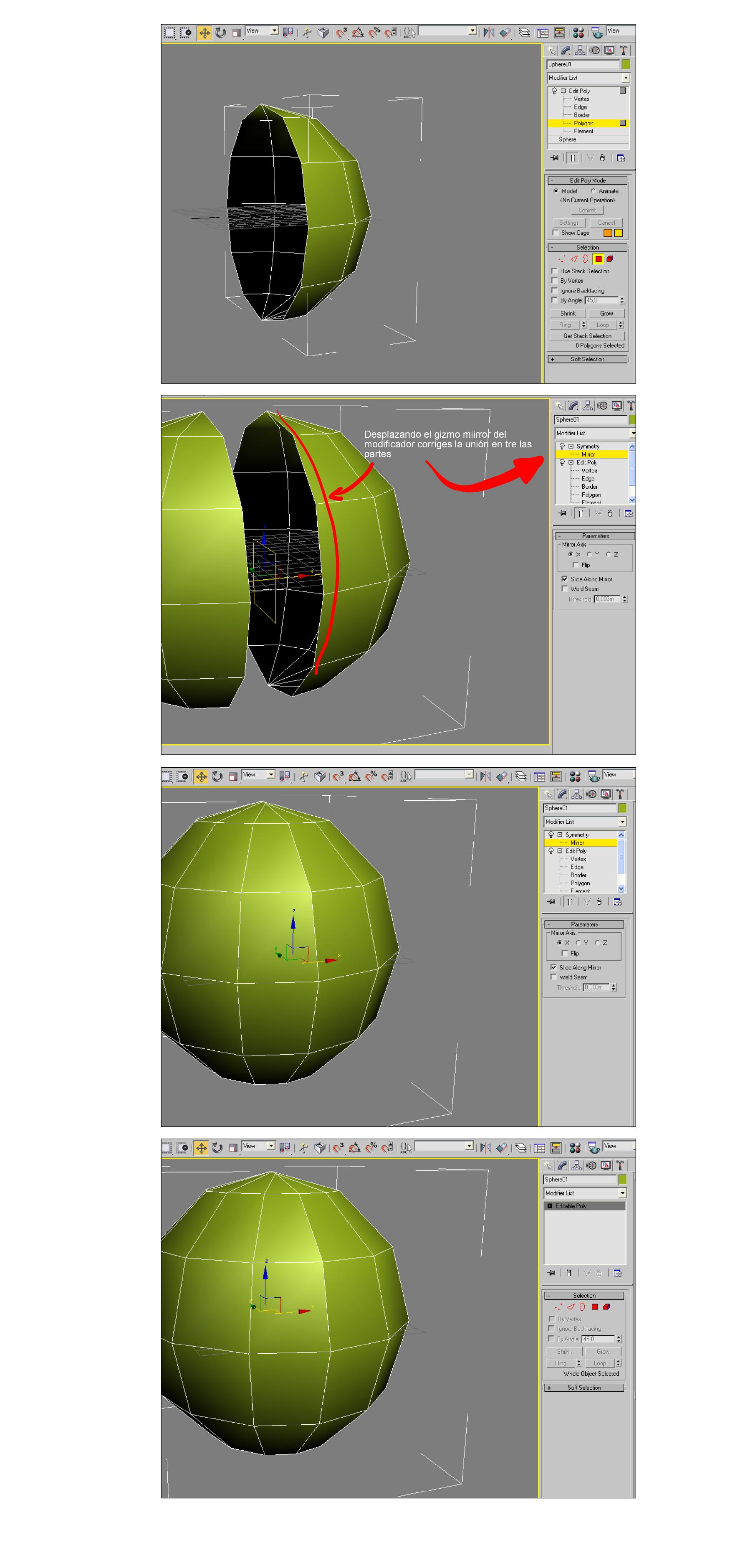 Hola a todos usando 3dsMax 7 he creado la mitad de una cara y con la opción mirrow he creado la otra parte, quería saber ahora cómo puedo unirlas pruqe en el tutorial me decía que dejara -0,5 offset entre los dos, mi duda es dejándolo a 0 se quedarán pegadas y trabajaran como una unidad? Gracias a todos.