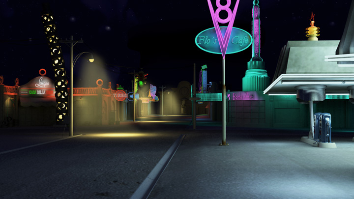 Y la de la escena de Cars, te sobran los montes, ¿no? Total, no se ven en la imagen final.
