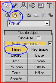 Ahora vamos a crear con una Spline línea los planos de los muros de la casa, para eso nos vamos a crear forma<splines<línea.