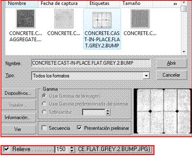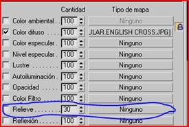 nos vamos de nuevo a la lista de mapas y en relieve apretamos en ninguno, apretamos en bitmap y buscamos una copia del material anterior en blanco y negro para poderle dar el realce. La abrimos subimos de nivel Archivo adjunto 232798 vamos a relieve y le damos un valor de 150.