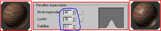 Los ladrillos tienen un aspecto bien crudo así que nos vamos a resaltes especulares y cuadramos los niveles como se muestran en la imagen.