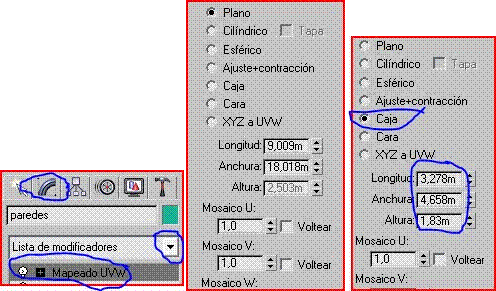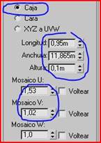 No se nota mucho nuestro material así que nos vamos a modificar<lista de modificadores<mapa UVW y cambiamos los siguientes parámetros.
