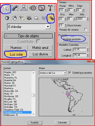 Ahora digamos que nos gusta estar ubicados geográficamente y que la posición de la luz solar no se corresponde con nuestra residencia así que nos vamos crear<sistemas<luz solar, y escogemos nuestra ubicación geográfica si queremos graduamos la hora del día.
