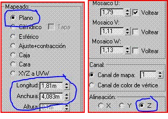 Ahora nos vamos a modificar<lista de modificadores<mapa UVW y seleccionamos los siguientes parámetros.