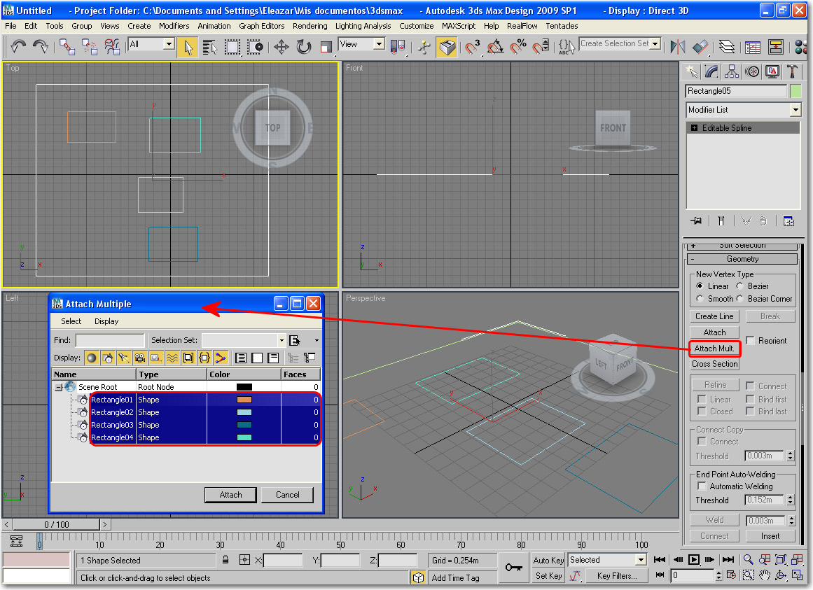 Buenas otra vez, sigo con el mismo problema, yo pincho en geometría (todo bien), luego en asociar múltiple donde se me abre la ventana para elegir all y attach, todo muy bien, pero no tengo nada que elegir, me aparece vacía (y tengo todas las paredes seleccionadas eh) así que, ni idea, me estoy volviendo loco, llevo ya dos días con este paso, seguro que es alguna tontería la que me impide continuar, pero no la descubro.