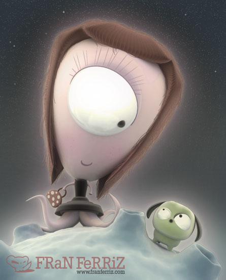 Bicho popero, me mola, el pelo es raro, pero no sé si es premeditado. El planeta y el perro están geniales. Como siempre, gran trabajo.