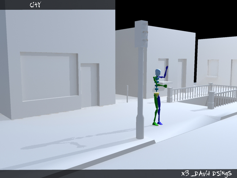 Pon alguna farola, y luces en algún edificio, te aconsejo que quites al Biped ese de ahí, no pega nada. Mira, te aconsejo que si eres novato hagas algún boceto de lo que vas a modelar por muy simple que sea. Cuando el boceto te guste pues empiezas a modelar lo que has dibujado.