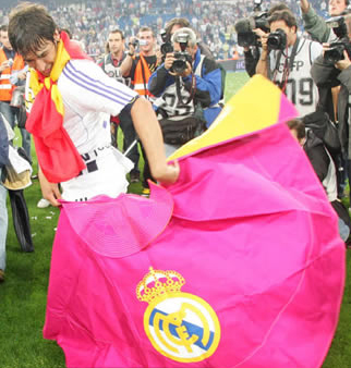 Enredar con la bandera de España en esto. Francamente. Diarra iba con la de mali, Cannavaro con la italiana, beckan con la inglesa, y Raúl con la española, los brasileños y los argentinos con las suyas.