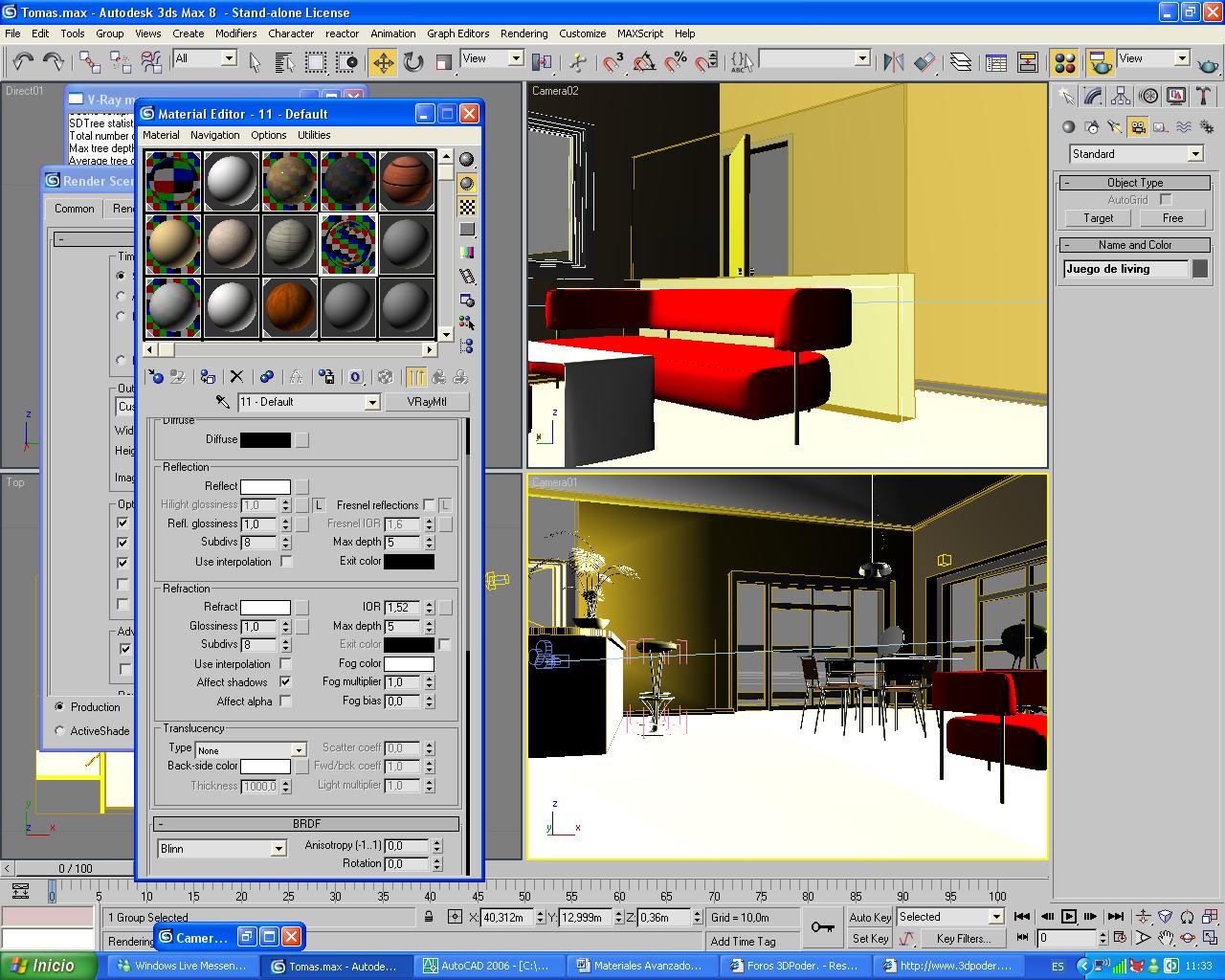 Hola gente, del foro. Necesitaría de su gran ayuda. Alguien puede decirme cómo mejorar el efecto de estos vidrios. Pareciera que no hay cristales ya que no se ve ninguna clas de reflejos en ellos. Uso 3dsMax 8 y renderizo con Vray. Muchas gracias.