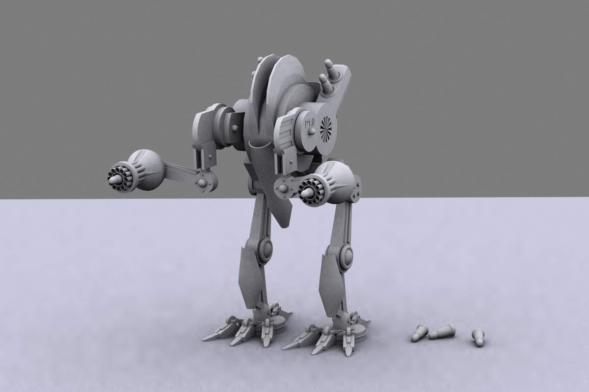 Hola amigos. Estoy descansando un poco del modelado orgánico y ahora estou practicando onjetos de composición tipo booleanos y eso. Aquí dejo una chapuza que estoy haciendo. Me he animado viendo por el gran trabajo de nuestro compañero nejharim y su Apu 2. Ni mucho menos pretendo llegar a ese nivel, pero así me pongo un objetivo para mis practicas. Le añadiré algunos cables, unos brazos armados y algún detalle que otro. Saludos a todos.