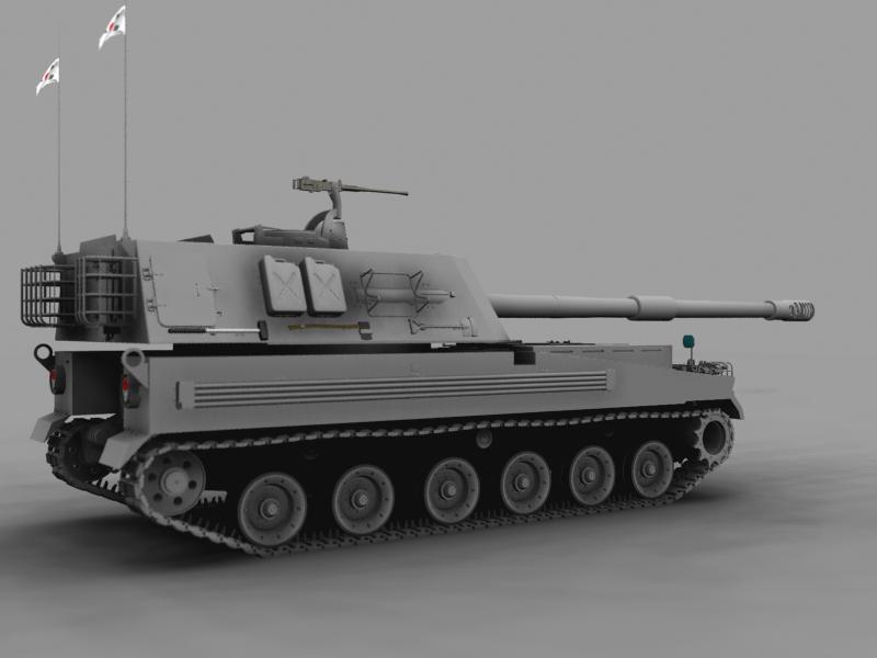 Mientras defino la escena y texturizo el AS-90 os doy la vara con el modelado de otro, esta vez coreano, el k-9. Este también lo están probando en España para a ver si tienen dinero y lo adquieren, aunque la mayoría de los entendidos prefiere el alemán PZH-2000.