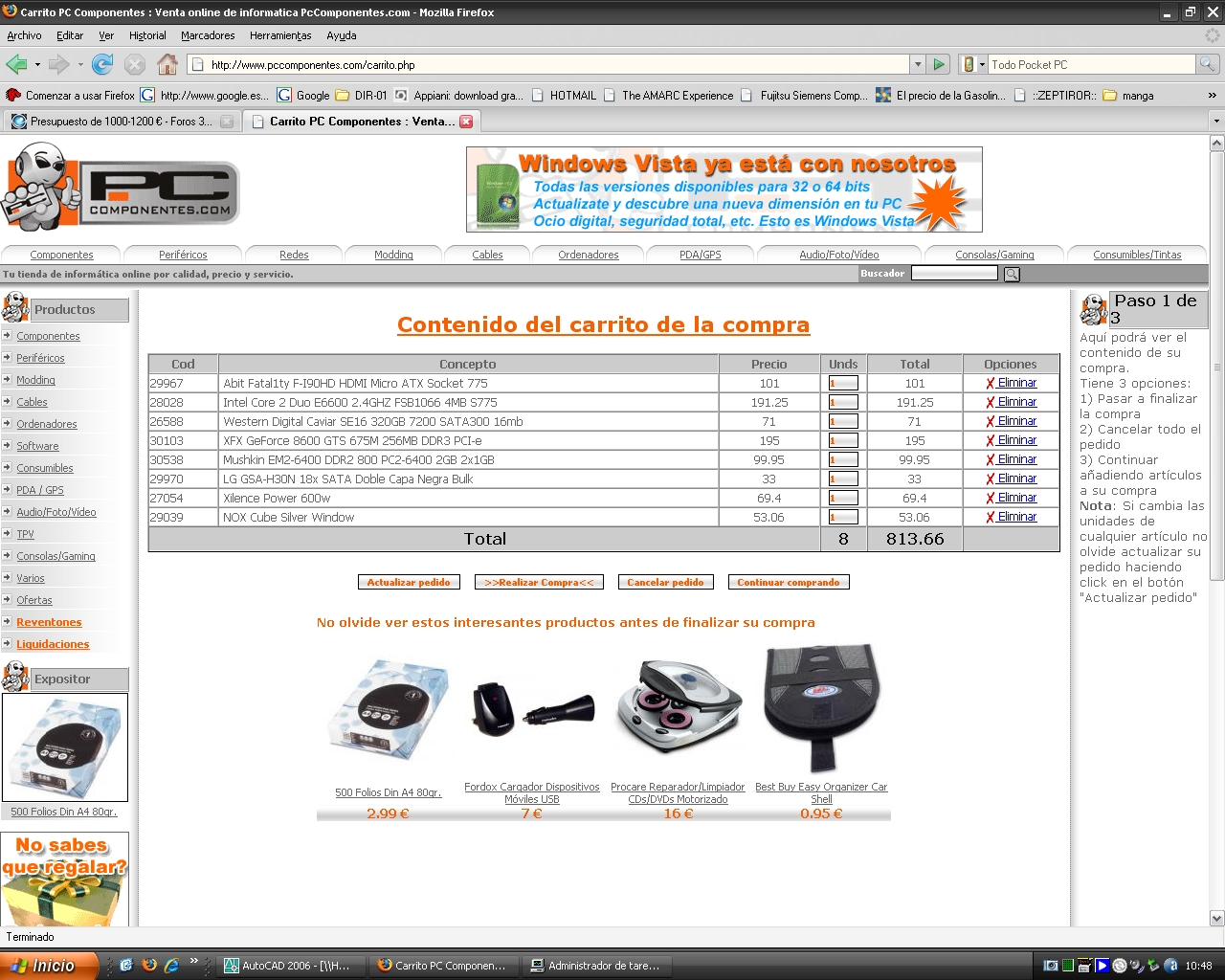 De todas formas, depende del uso que le des, si vas a renderizar mucho seria aconsejable un Q6600 (un cuatro procesadores), o si te va lo de modelar subir el presupuesto en una tarjeta gráfica mejor.