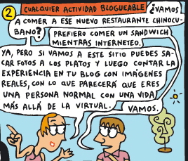el blogero latoso: aprovecha cualquier oportunidad -como, por ejemplo, tener que mandar un presupuesto a un cliente en un ciber- Para sacar fotografías y observar de reojo a todo quisqui. Así luego puede comentarlo en su blog (que leen el y cuatro gatos) en tono condescendiente, demostrando así su punzante e ingeniosa perspicacia y que es una persona normal con una vida más, allá de lo virtual.