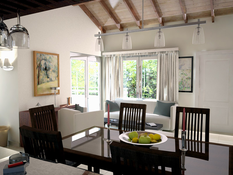 Muy elegante, hay por encima le veo mal en el render que no se visualiza bien a través de la puerta, el bosquecillo, ni la azotea, o será que se intento plasmar un efecto de deslumbramiento solar, pero no se concuerda con la vista en la ventana. Saludos.