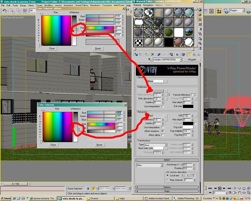 Estos son los parámetros del vidrio, a mi personalmente no me gustan(pero a mi jefe si), el cielo es el primero que vi, ya lo tengo cambiado.