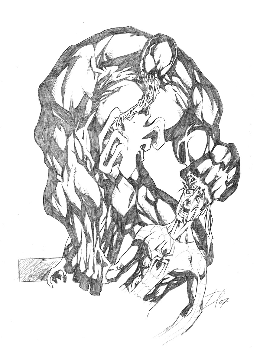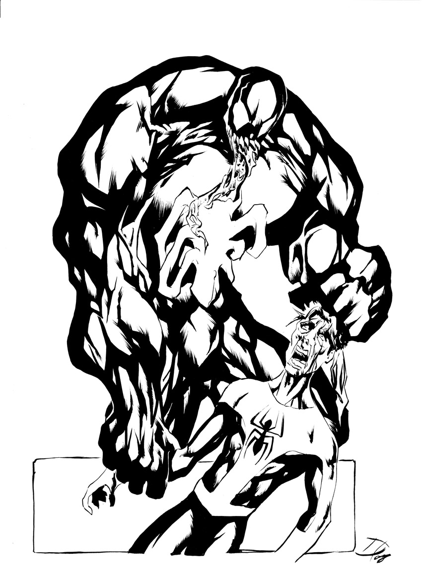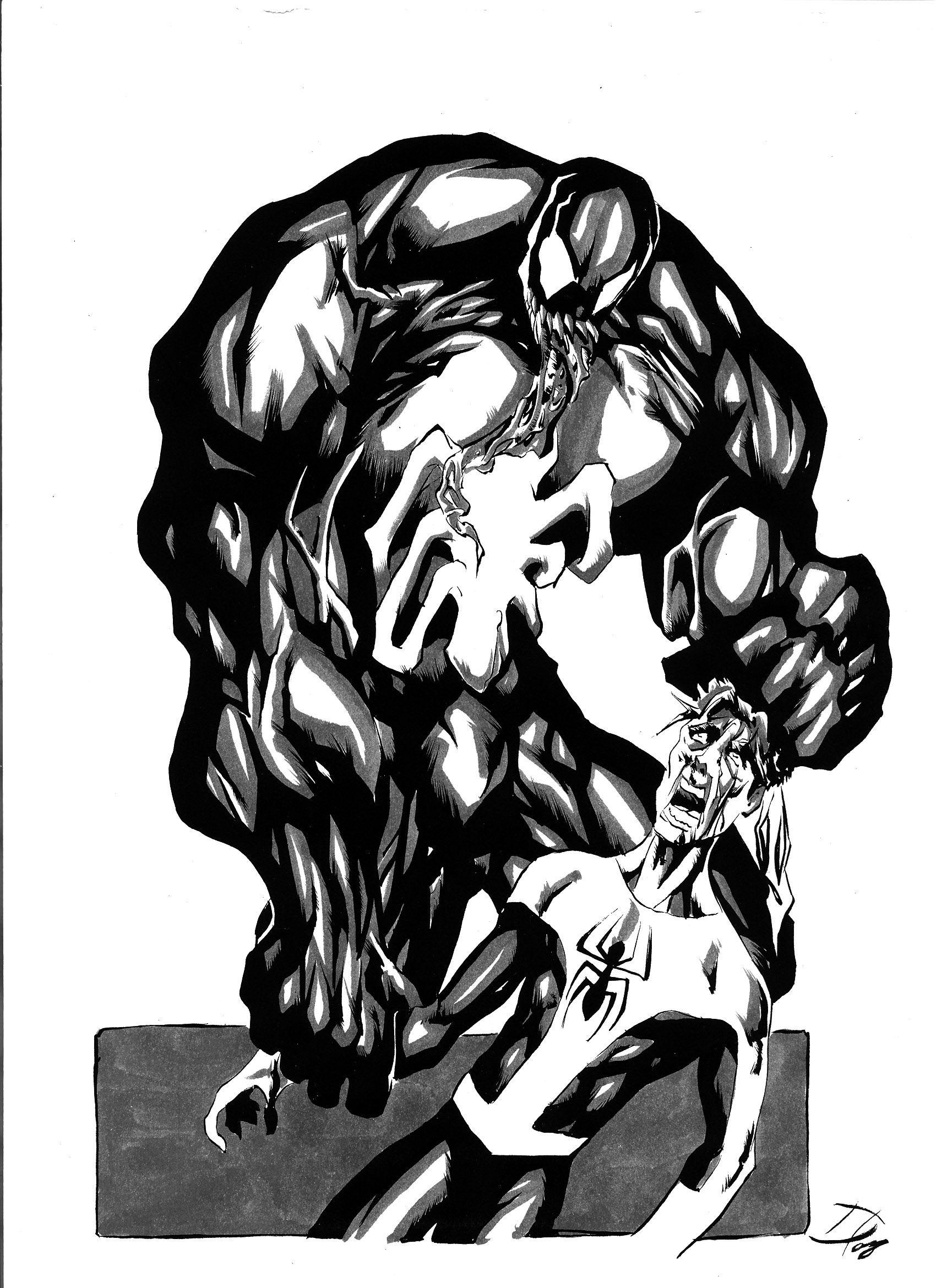 Ahí va un Venom antiguo con algo de tinta de ahora. Siento hacerte recordar el maltrato a tu pobre trepamuros, pero es que, veía el dibujo ahí solo, sin tinta que.