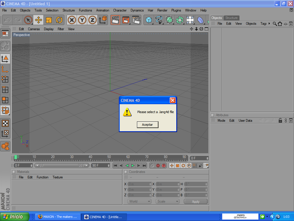 El pantallazo es normal, te está pidiendo el archivo que viene en formato c4d, averigua que versión tienes, porque solo te funcionara el paquete que corresponda con el tuyo, si tienes la versión 10.008 o la 10.111, la podrás descargar de la página oficial, si por hola es la 10.102 yo la tengo, pero averigua primero tu versión. Saludos.