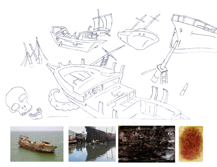 Algunas referencias que tome, el boceto y las texturas que utilice.