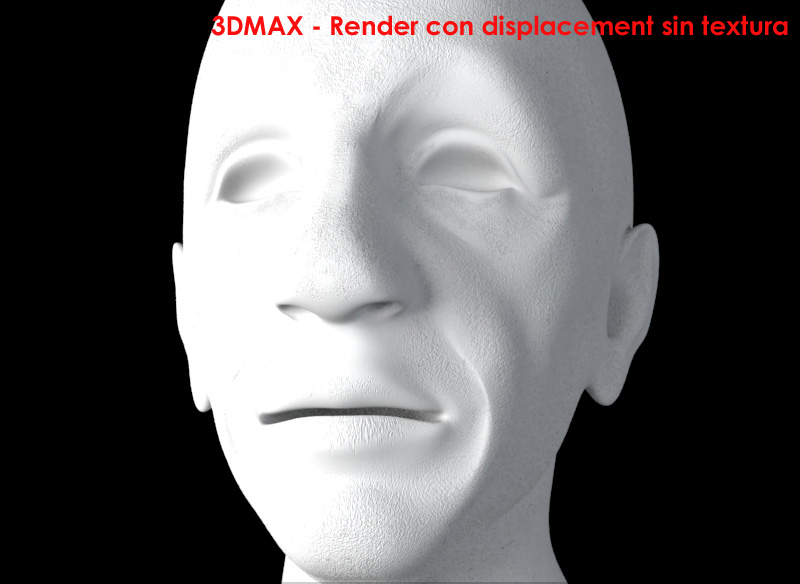 En max lo importo, le aplico un MeshSmooth con dos subdivisiones y luego Vray displacement mod. En el texmap meto el displacement (antes le he aumentado el contraste el Adobe Photoshop, y también hay que girarlo verticalmente). Probando encuentro que los parámetros más o menos buenos son amount= 0,6 y shift=-0,3 (la regla es dividir por -2 el amount para obtener el shift).