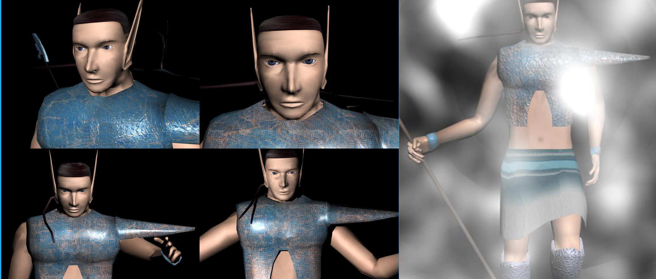 En este trabajo, para mí el objetivo y lo más importante era haberme puesto un límite de polígonos en este caso no más de 10.000 caras. El cuerpo tiene un total de 6066 caras, de los cuales casi 3000 son de la cara (más o menos). La armadura y la falda un total de 388 caras, y la lanza unos 208 solo que aquí no se ve entera. En resumen, un total de 6702 el conjunto.