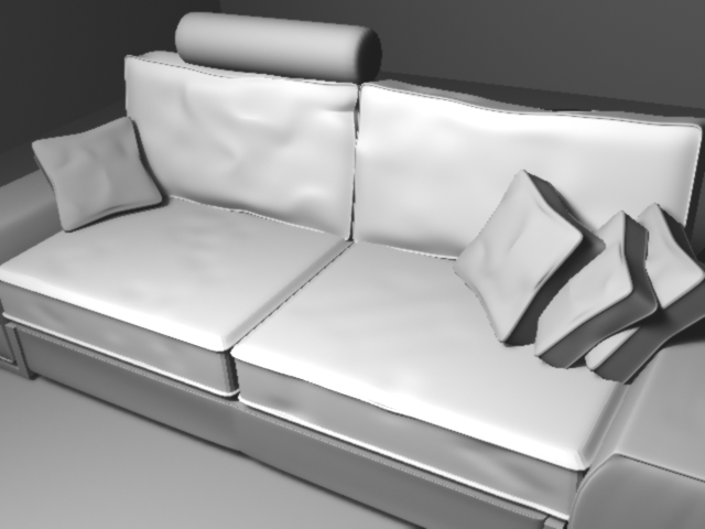 Aquí os dejo unas capturas del sofá que estoy haciendo, me traen loco las texturas, no sé cómo conseguir ese resultado de cuero blanco y esos pliegues, los modelo? Texture displazamentú o con Bump va ser que no, es que no lo quiero para un render estático.
