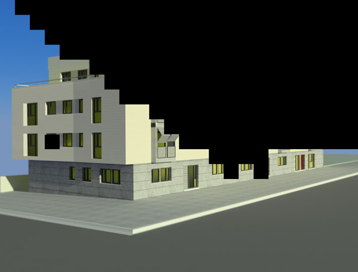 Hola ya tengo el render. Tengo una vrey Sky y una Vray Sun y no me remarca bien los detalles del ladrillo ni las ventanas.