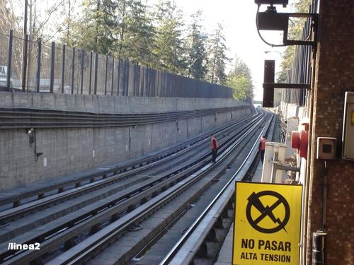 Para mí el grafitti de la izquierdo junto con la pared dan algo de mareo, la luz de la izquierdo a lo largo de la pared me parece poco oportuna, los raíles del tren/metro no son cuadrados, son un perfil característico, y las traviesas no son en metal, o al menos a mí me gustaría que fuesen de madera, podrías poner clavos de esos que agarran los tablones.