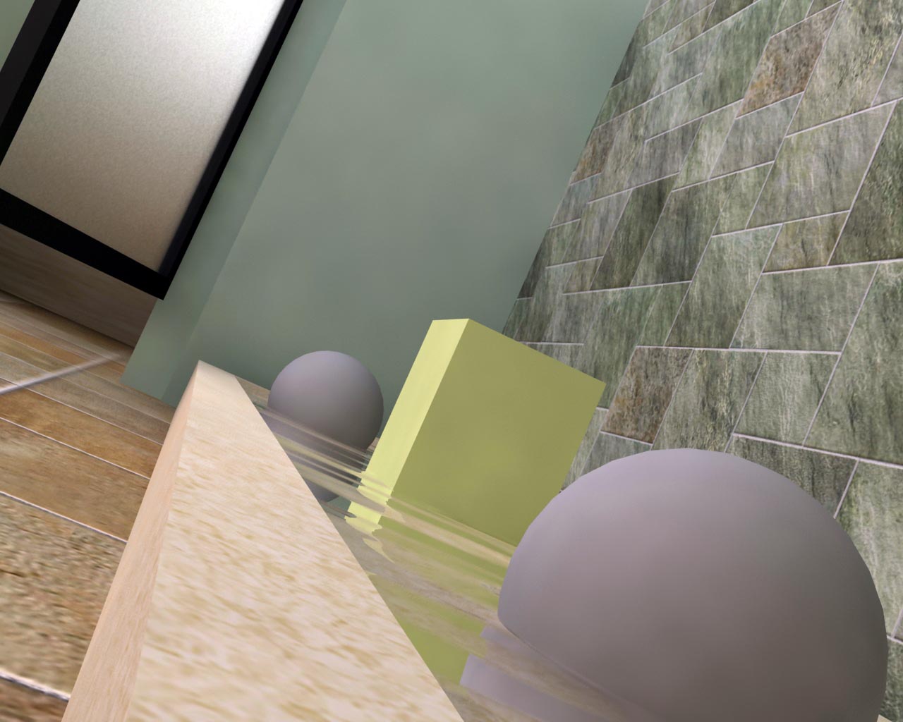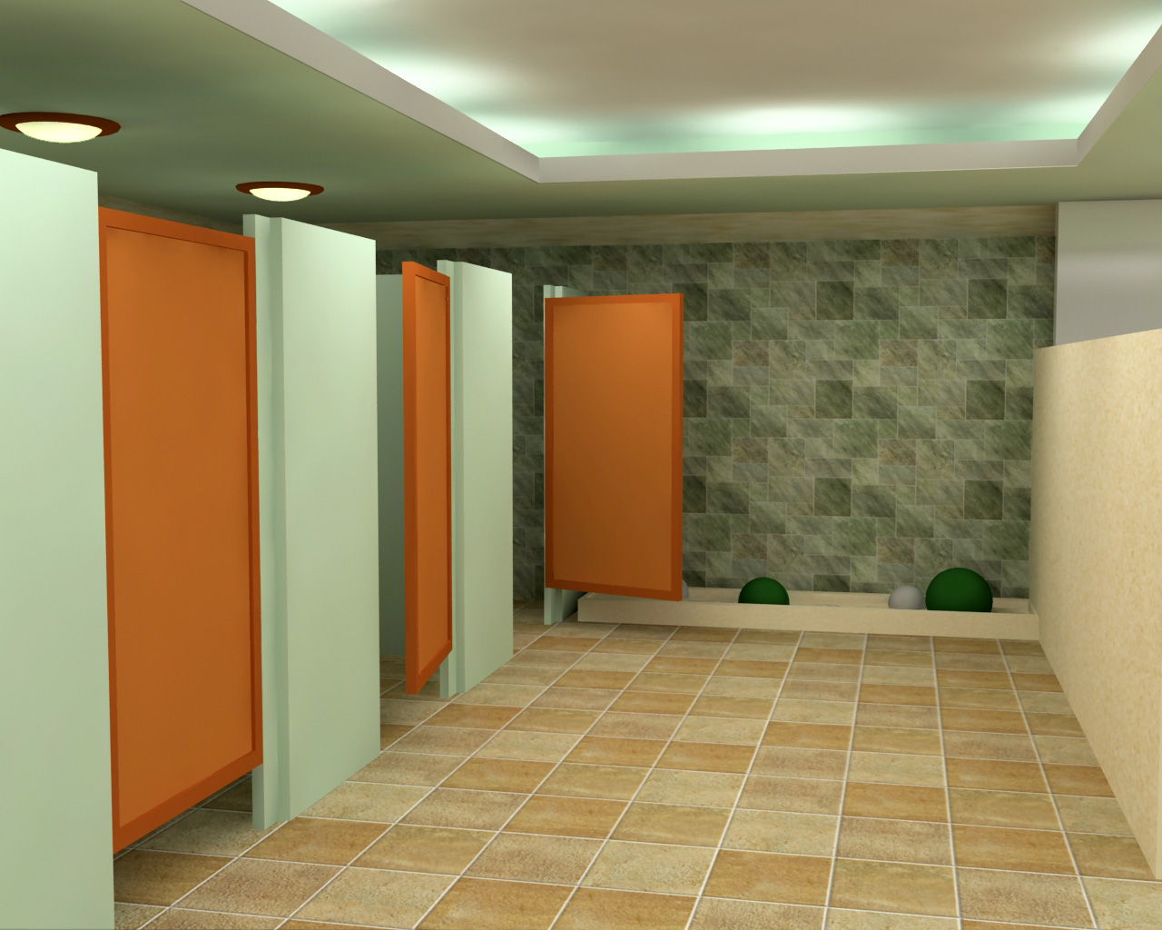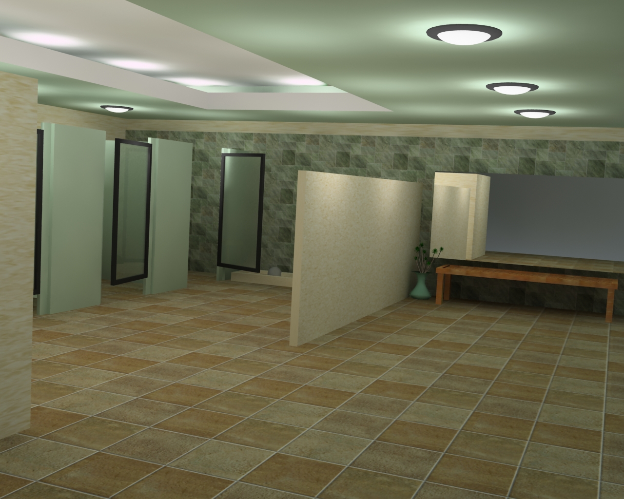 Hola buen trabajo. Vaya, pero creo que te falta trabajar más las texturas se ven un poco raras, como la de la pared de loseta verde, la textura de la base de la pileta, las puertas de los vestier.